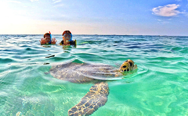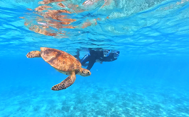ガイドがウミガメのいる場所までご案内致します。